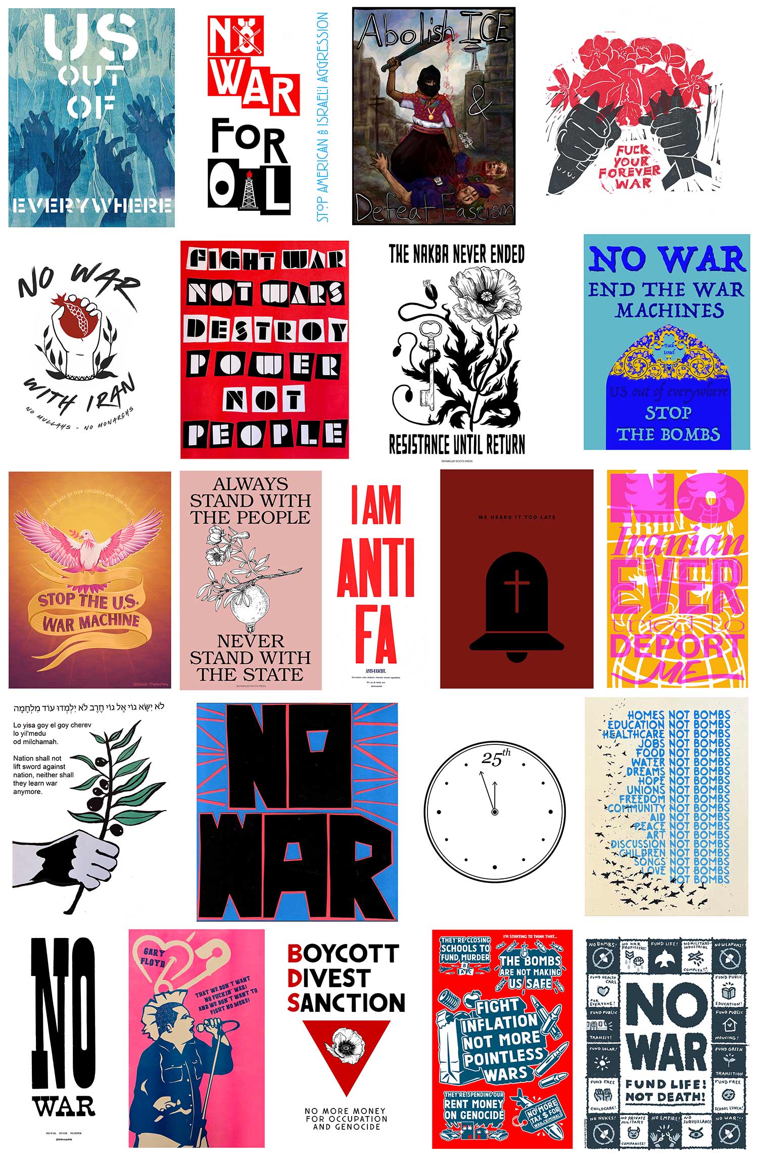 This package is a response to the call on visual artists everywhere to submit graphic work that will further amplify and support existing and emerging Anti War/Anti Fascist/Anti Imperialist movement.
